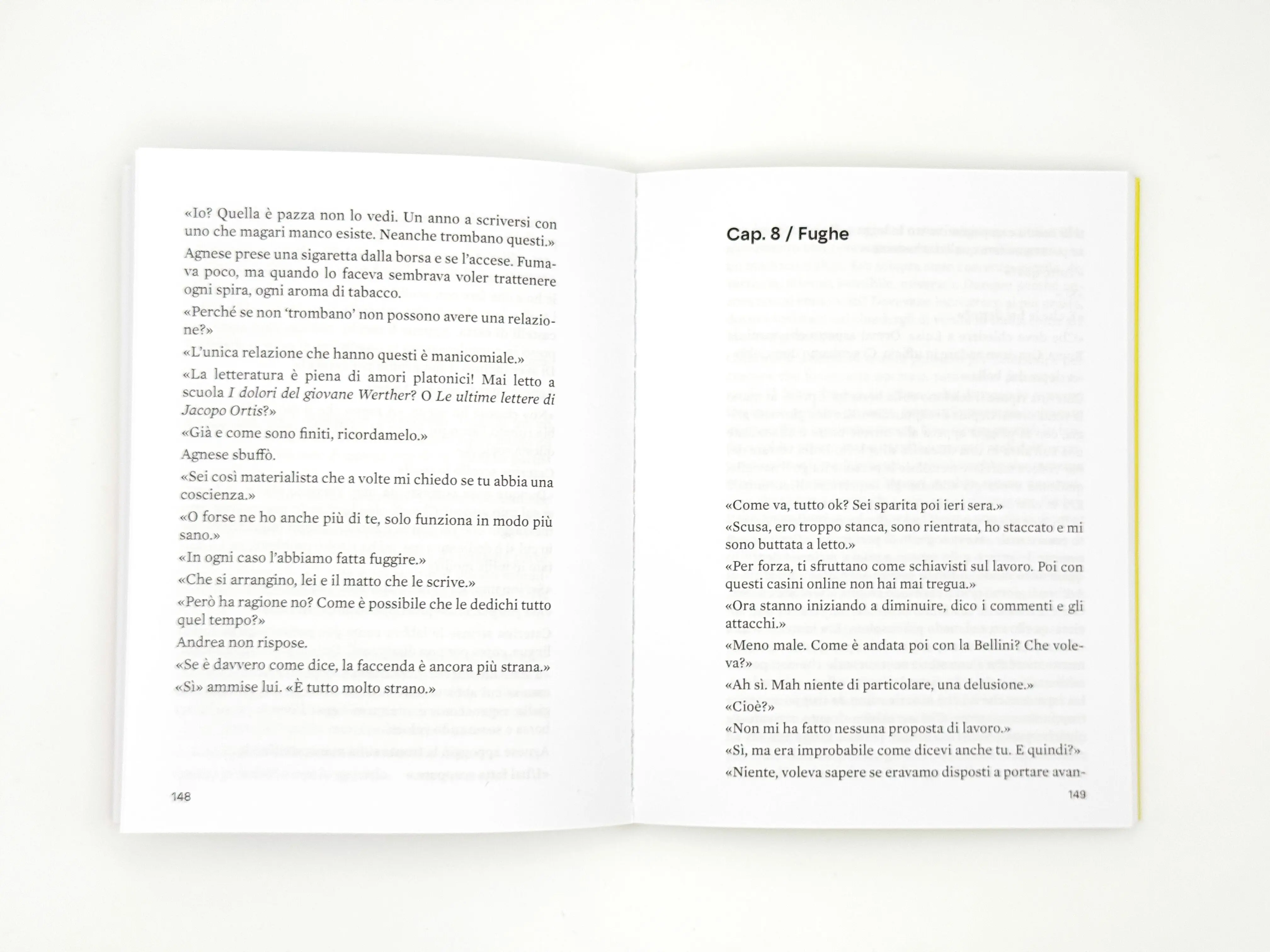 «L’ultima volta che aveva visto Gordo era stato in veranda, quando si era seduta con la cesta dei funghi, il tagliere e un coltello. Il primo sole del mattino aveva sciolto la pesantezza gelida dell’aria, accarezzando la pelle con un impossibile fremito d’estate. I prati della vallata sottostante si stavano asciugando dalla bruma, col verde che si intensificava come dietro a un vetro progressivamente ripulito. I contorni impervi e frastagliati dei monti che chiudevano l’orizzonte, e che con il Pizzo d’Uccello si allargavano in orizzontale ad aprire un ventaglio di roccia, si stavano facendo via via più nitidi, al punto da incidere l’azzurro pallido del cielo. C’era nell’aria un odore buono di terriccio e porcino, felci umide e nocciole, muschio e legna. Agnese stava coi gomiti sul tavolo in legno, raschiando i funghi ancora sporchi col coltello, sfregandone delicatamente il cappello bruno con un panno. Indossava i jeans con cui era andata nel bosco alle prime luci dell’alba, un maglione bianco di lana grezza, e aveva ancora ai piedi gli stivali olivastri, gli stessi che non poteva toccare senza mandare Gordo in fibrillazione. Perché sapeva che l’avrebbe accompagnata nei suoi giri tra i castagni e l’erba alta, e che lui avrebbe potuto annusare ogni sentiero, ogni tana, ogni radice ritorta che spaccava il terreno. O che avrebbe potuto rotolarsi da una parte e dall’altra sui pezzi di prato incolto che si schiudevano all’improvviso nella boscaglia.»